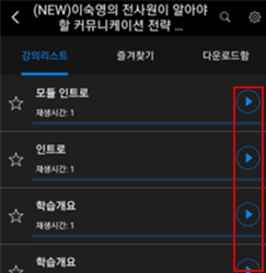 - 무선인터넷(wi-fi) 환경보다는 유선인터넷 환경에서 강의시청을 권장합니다. 도서관 및 지하철 등 공공장소의 wi-fi를 이용하실 경우 동영상 재생 시 끊김 현상이 있을 수 있습니다.