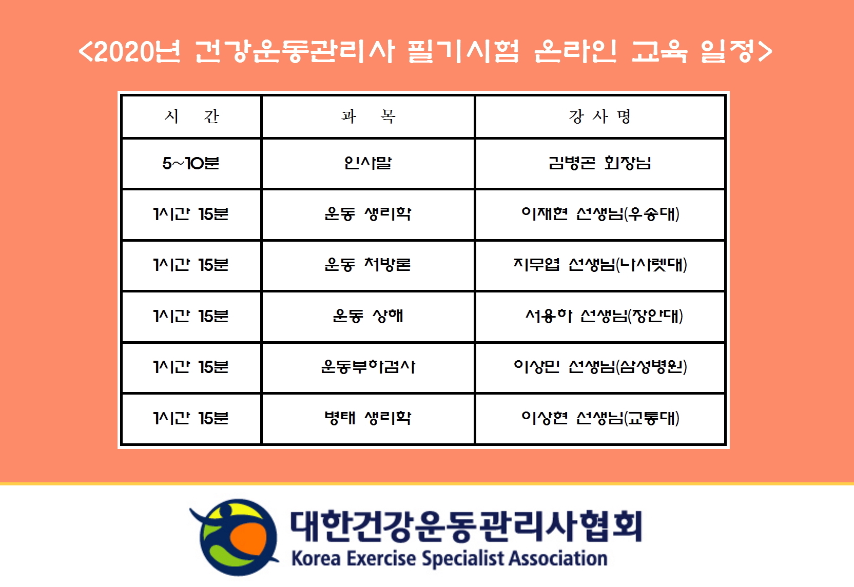 2020 건강운동관리사 필기시험 대비 온라인 아카데미